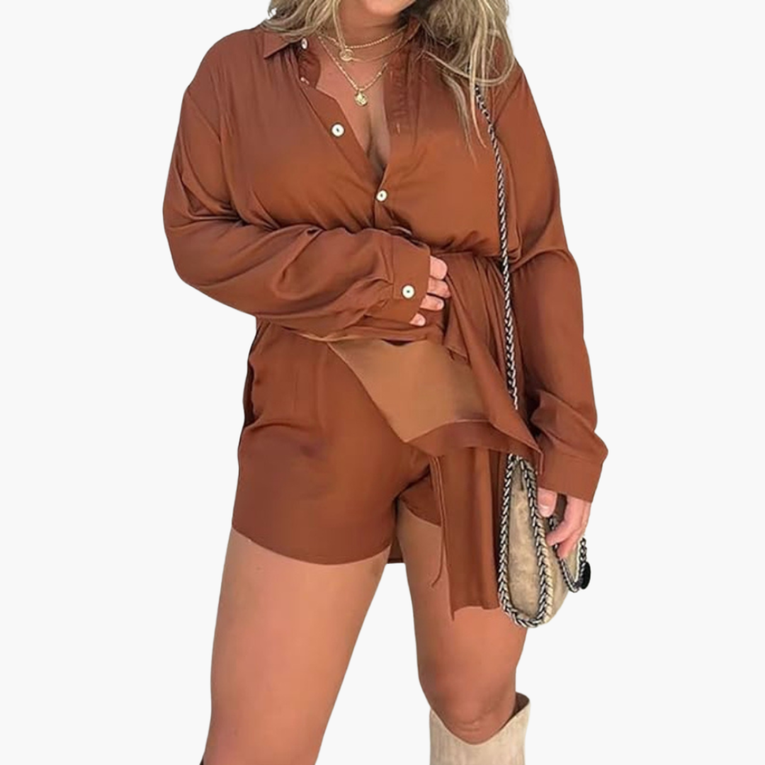 Dieses Set aus einem stilvollen Top und Shorts kombiniert Komfort mit modernem Design. Hergestellt aus hochwertigem, atmungsaktivem Stoff, sorgt es für eine angenehme Passform und ist perfekt für entspannte Tage oder ein zwangloses Treffen. Der vielseitige Look lässt sich sowohl zu Hause als auch bei Ausflügen tragen.