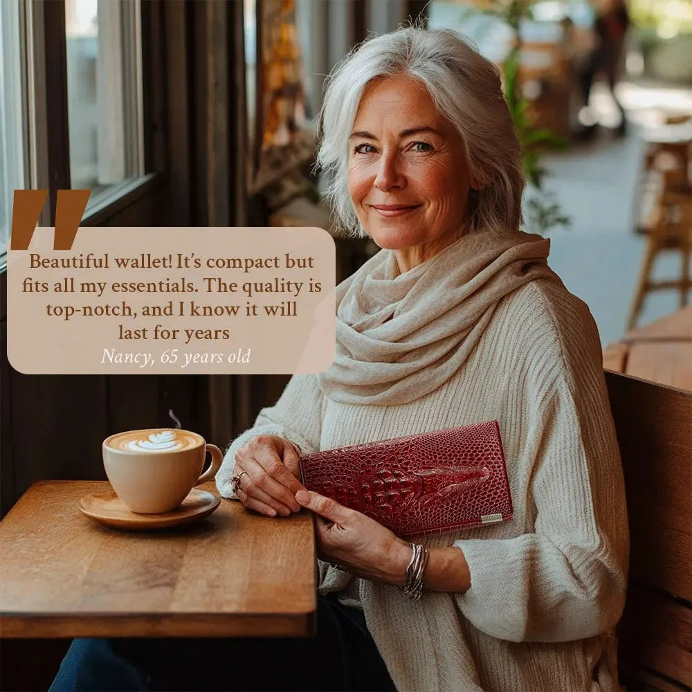 Caroline - Luxuriöse Geldbörse aus Krokodil-Prägung für Damen