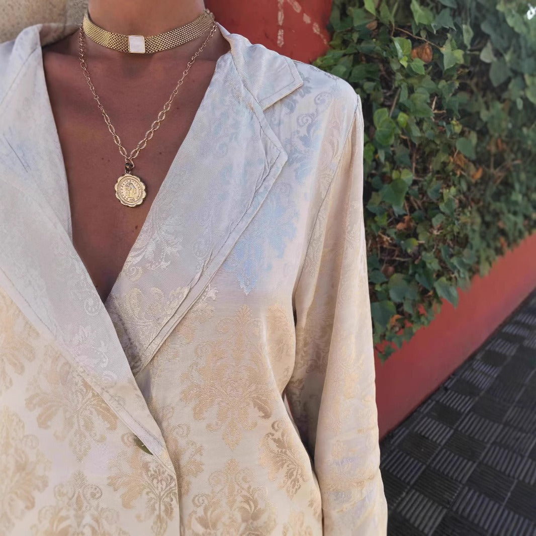 Ideal für elegante Abendessen, Abendveranstaltungen oder einfach nur, um überall mit Präsenz aufzufallen. Kombinieren Sie es mit goldenen Accessoires und einer Clutch für einen kraftvollen, sinnlichen und charaktervollen Look.