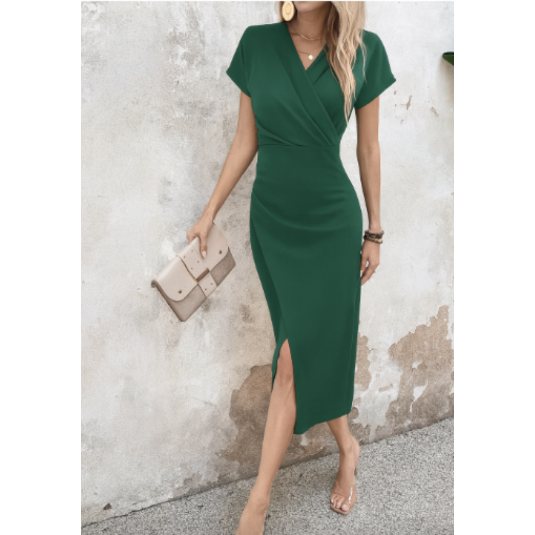 Das Damen Wickelkleid Mit Kurzarm | Midi ist mit Kurzärmeln, Wickeldetail und mittellanger Schnittführung gestaltet. Das neutrale Design ermöglicht vielseitige Kombinationen – beispielsweise mit Schuhen, Jacken oder Accessoires für unterschiedliche Anlässe.