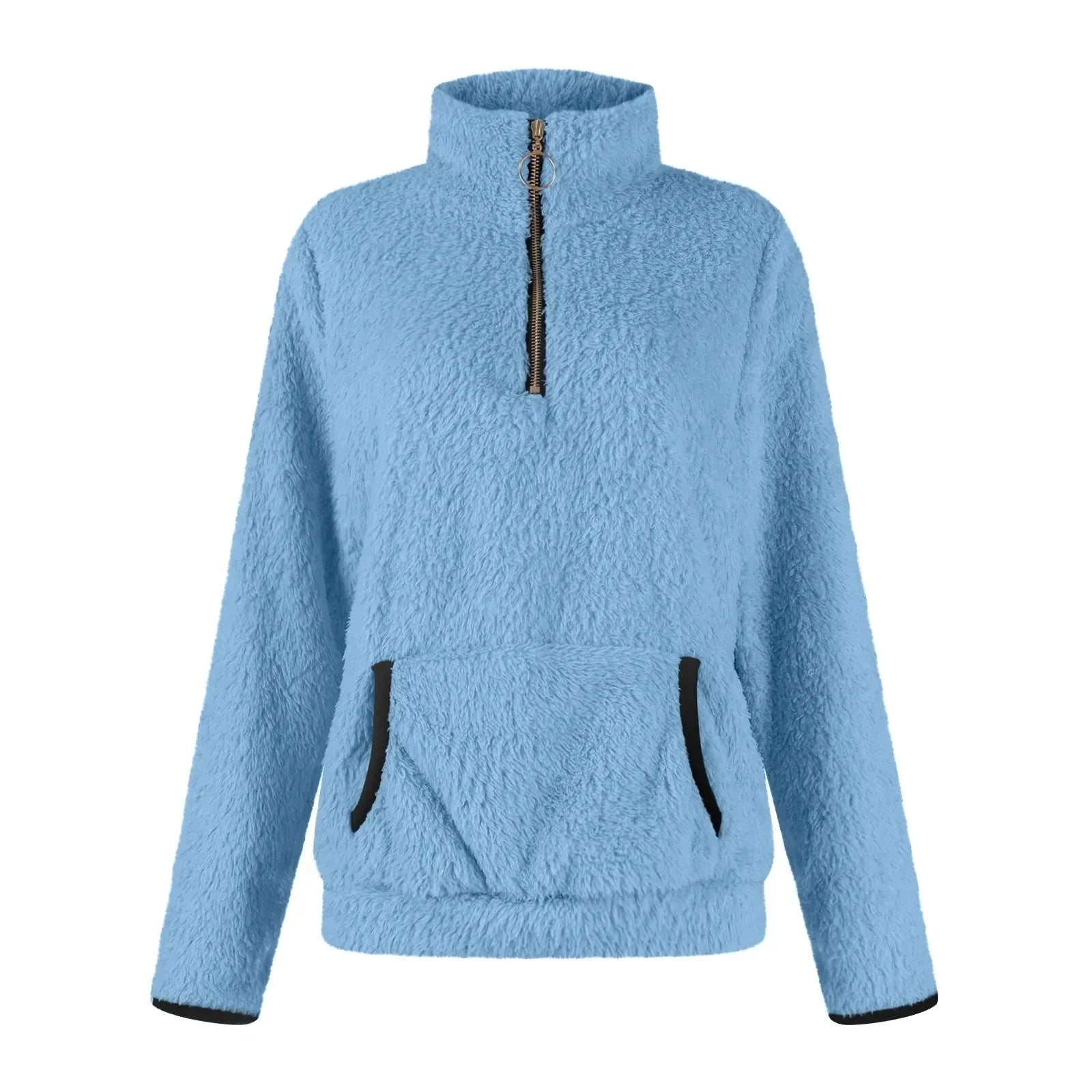 Damen Zipper Pullover mit praktischem Kängurutasche
