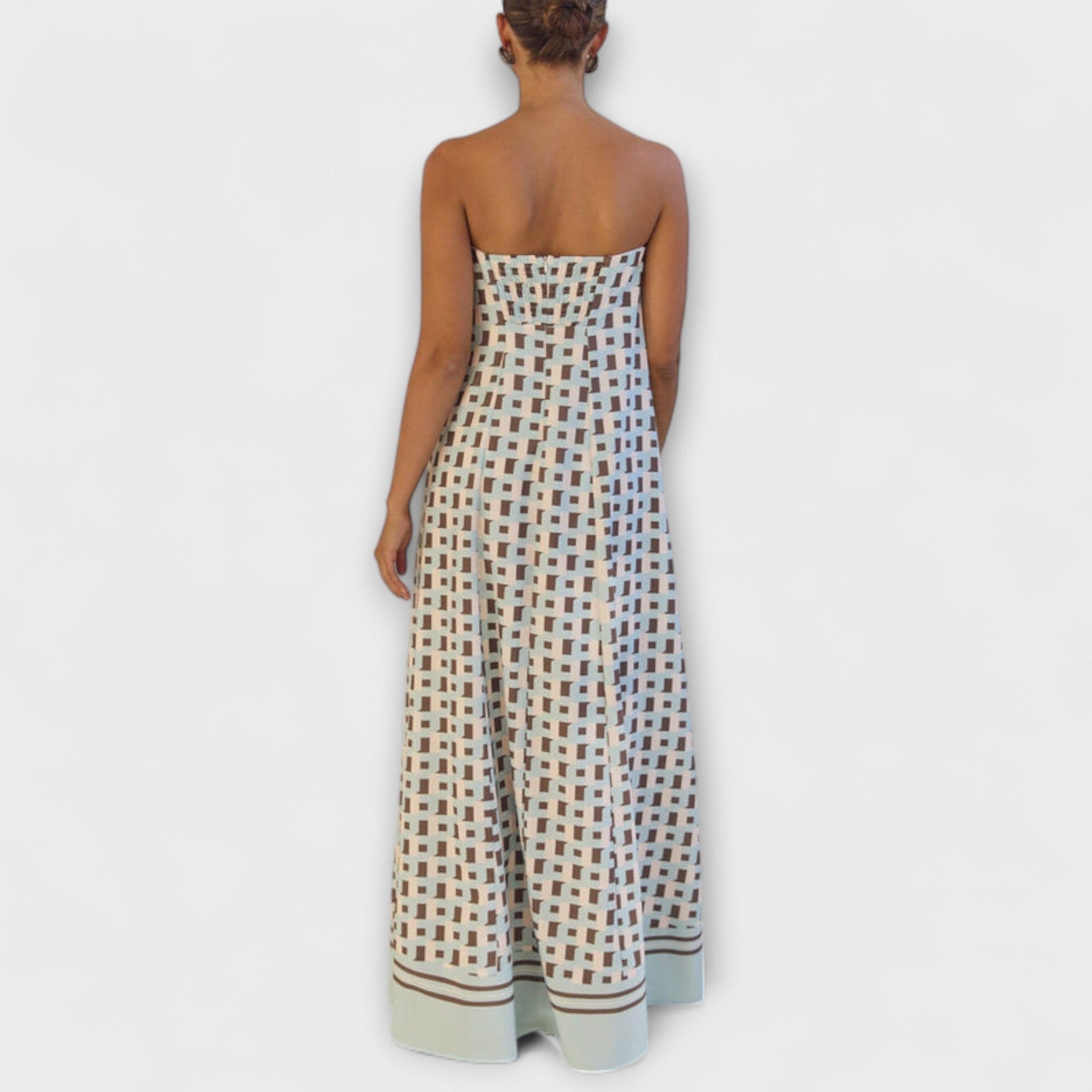 Hazel - Einzigartiges Off-Shoulder-Maxi-Kleid mit geometrischem Design