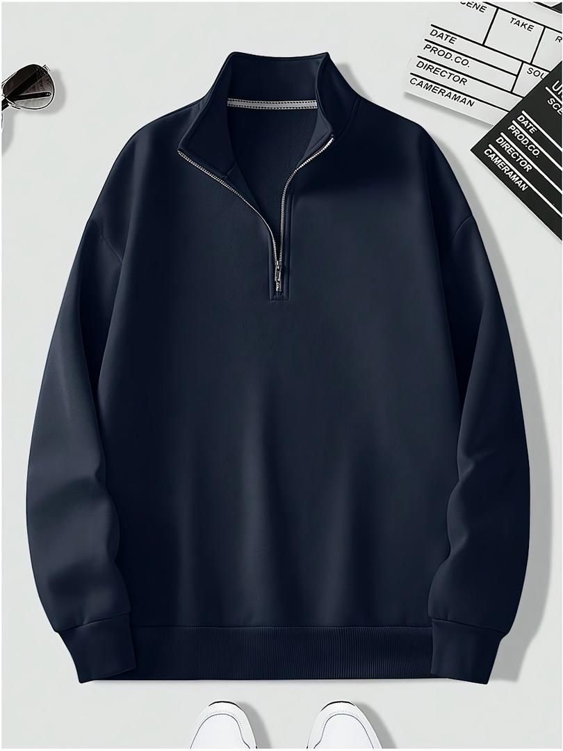 Das Herren Freizeit-Sweatshirt Mit Viertelzip | Winter ist ein langärmliges Oberteil mit einem kurzen Reißverschluss am oberen Vorderbereich. Die strukturierte Form und der hohe Kragen verleihen dem Design eine klare Optik. Es eignet sich für Winter-Outfits und kann mit Jeans, Jogpants oder leichten Jacken kombiniert werden. Der Viertelzip ergänzt das Design und ermöglicht unterschiedliche Kragenvarianten.