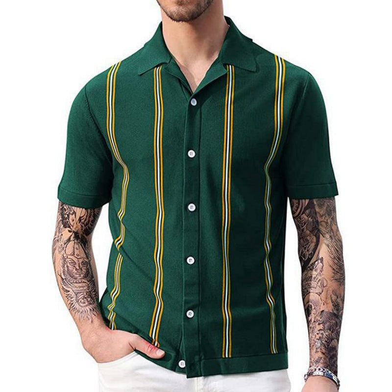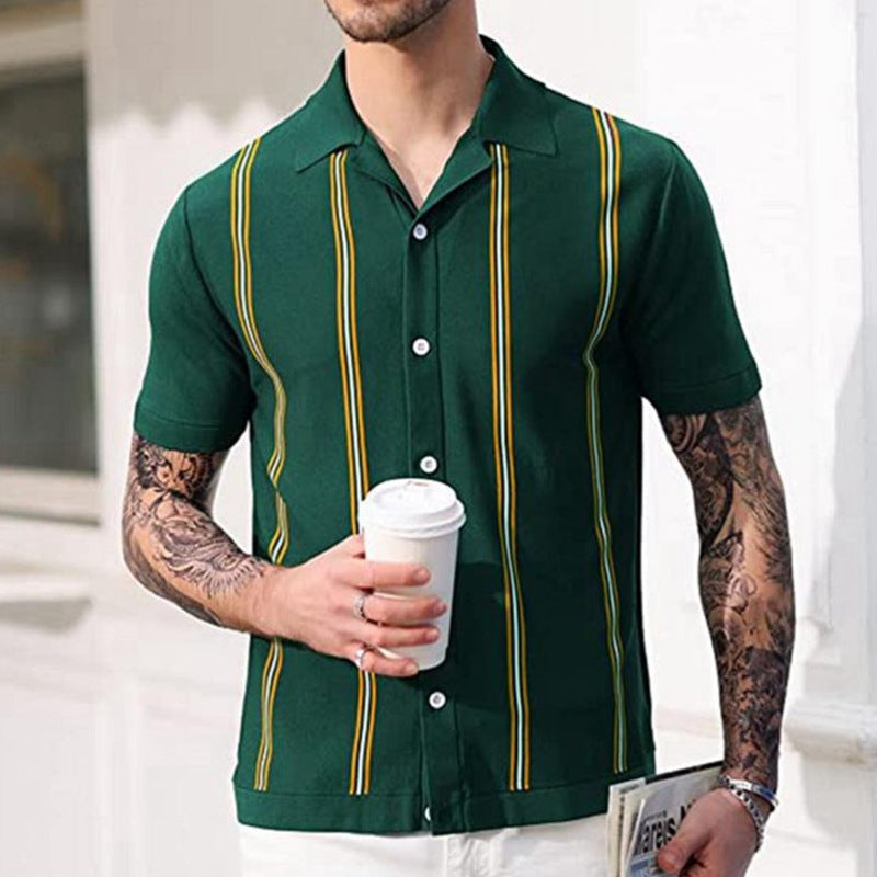 Herren Kurzarm-Hemd mit grafischem Streifenmuster Aliams