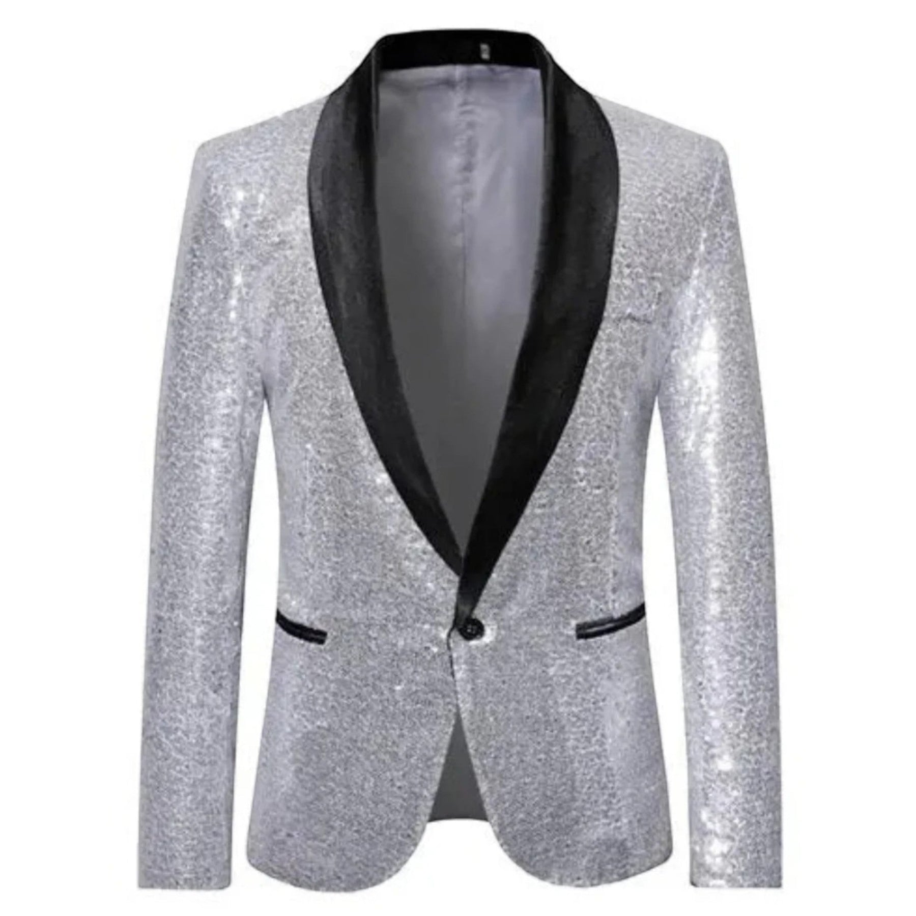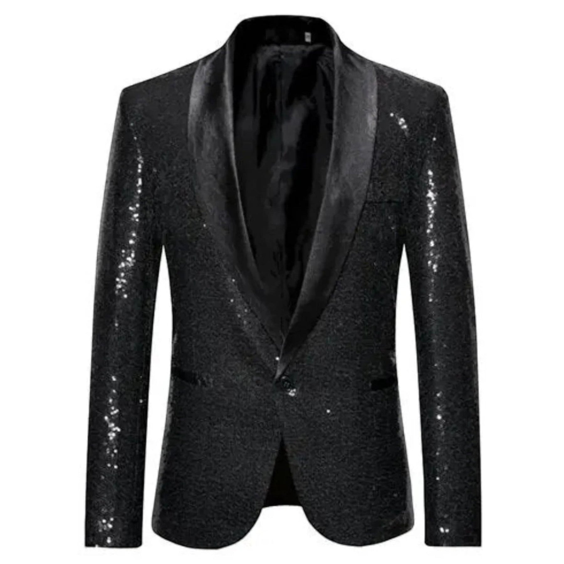 Der Herren Paillettenblazer | Formal ist ein Herrenblazer mit Pailletten-Details, gestaltet für formelle Outfits. Das Modell zeigt klare Linien und ein schlichtes Design. Der Blazer lässt sich vielseitig kombinieren, zum Beispiel mit Hemden, Hosen oder Krawatten, und passt zu unterschiedlichen festlichen oder geschäftlichen Anlässen.