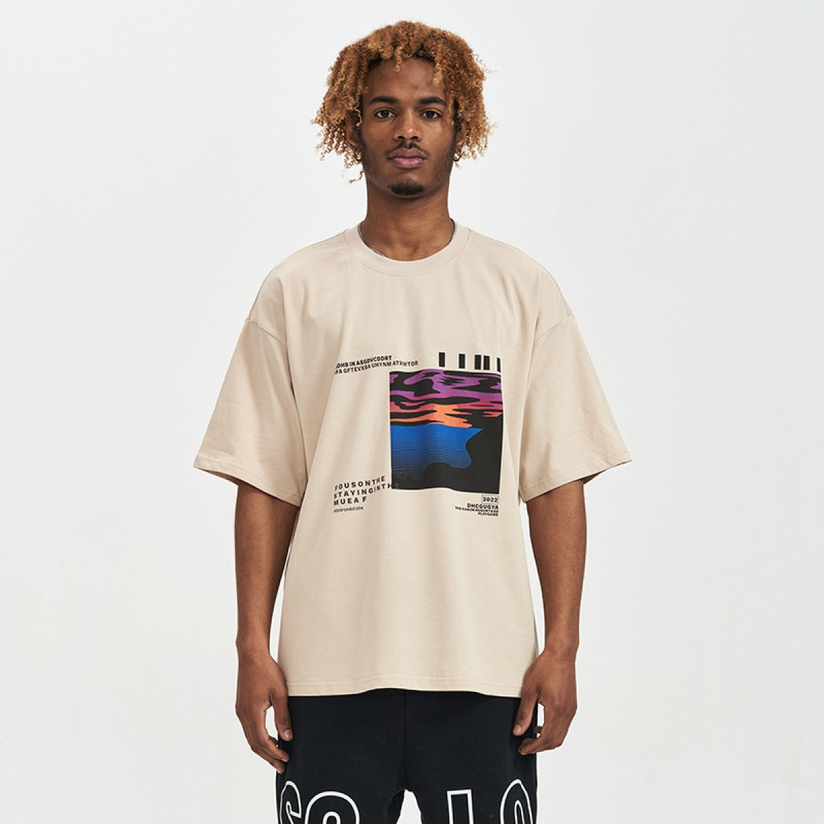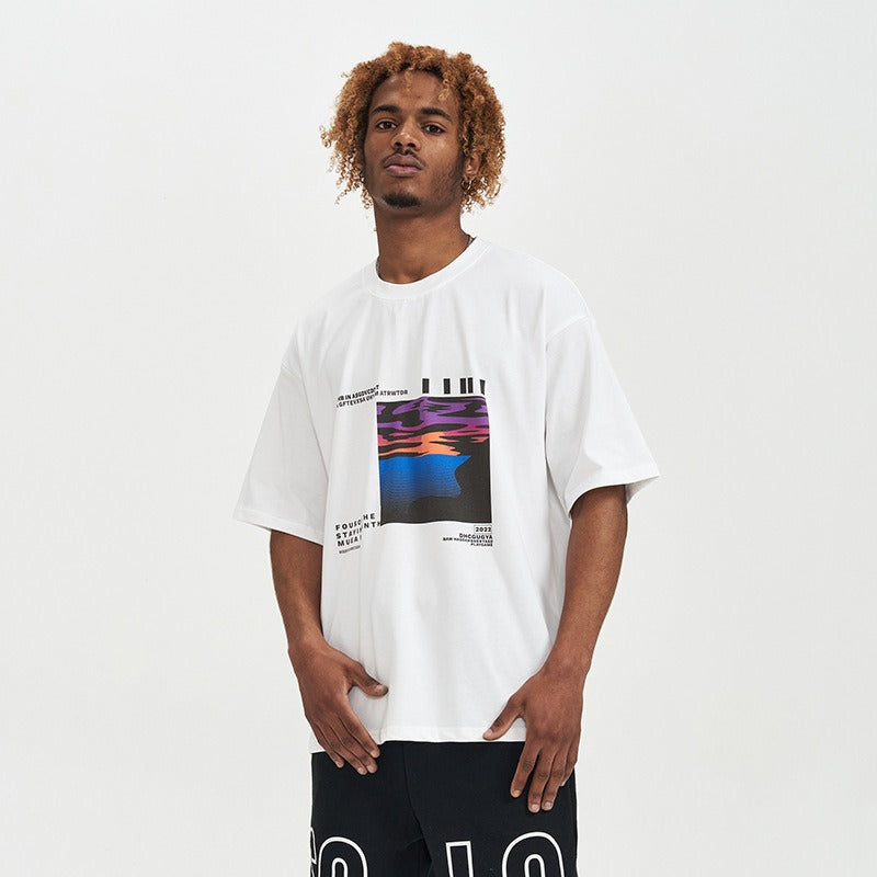 Ein Kleidungsstück, das für Authentizität und kompromisslosen visuellen Ausdruck steht. Dieses übergroße Baumwoll-T-Shirt kombiniert absoluten Komfort mit einem modernen grafischen Frontdesign. Die lockere Passform bietet Bewegungsfreiheit, während der weiche Stoff den ganzen Tag über für ein kühles, leichtes Tragegefühl sorgt.