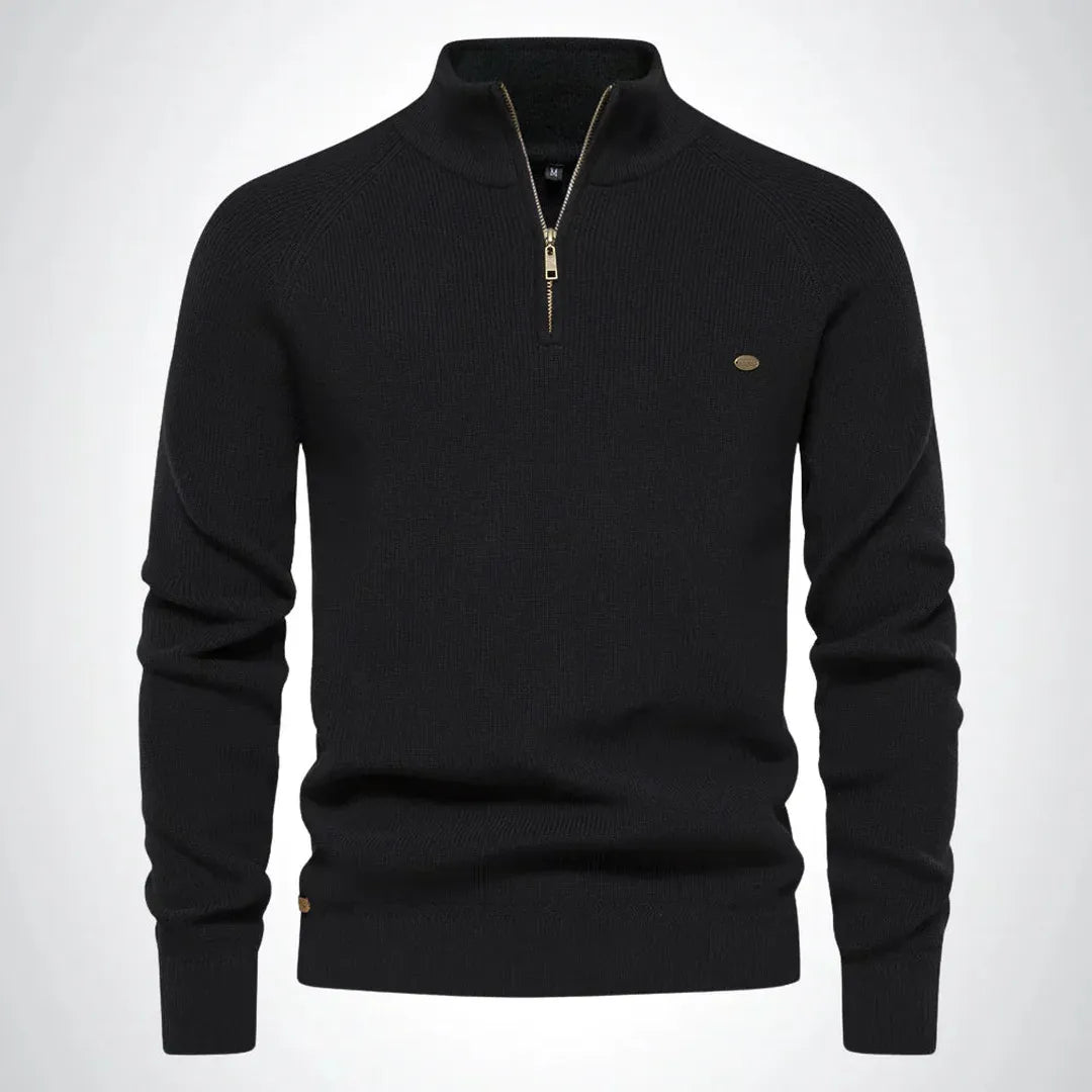 Klassischer Herrenpullover Mit Halbem Reißverschluss | Stehkragen