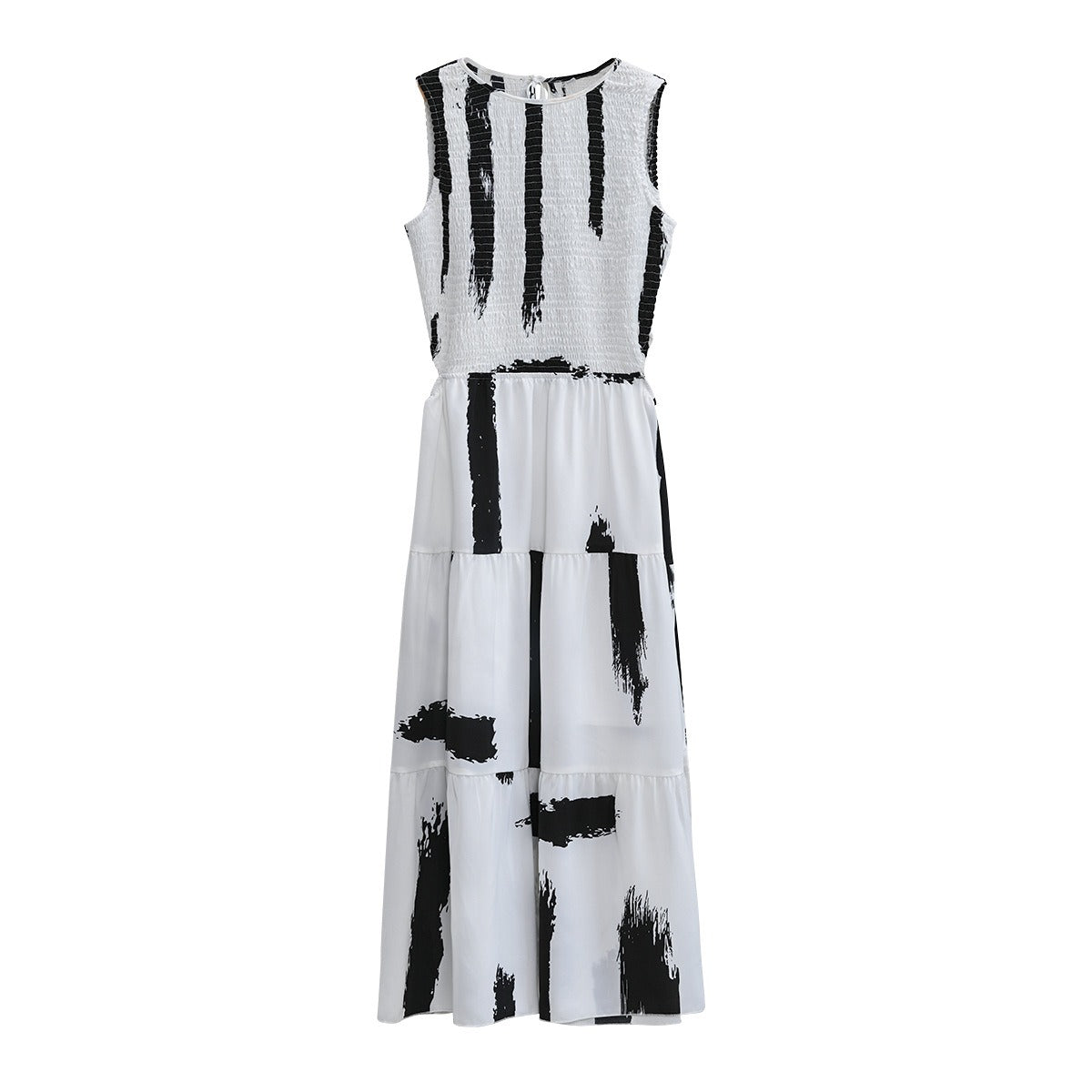 Der kontrastierende Pinselstrich-Print sorgt für eine moderne, auffällige Ästhetik, ideal für alle, die ein Kleidungsstück suchen, das für sich selbst spricht. Der ärmellose Schnitt und das mittellange Design machen es zu einem vielseitigen und bequemen Kleidungsstück, das sich perfekt für den Alltag mit einem Hauch von Pepp eignet.