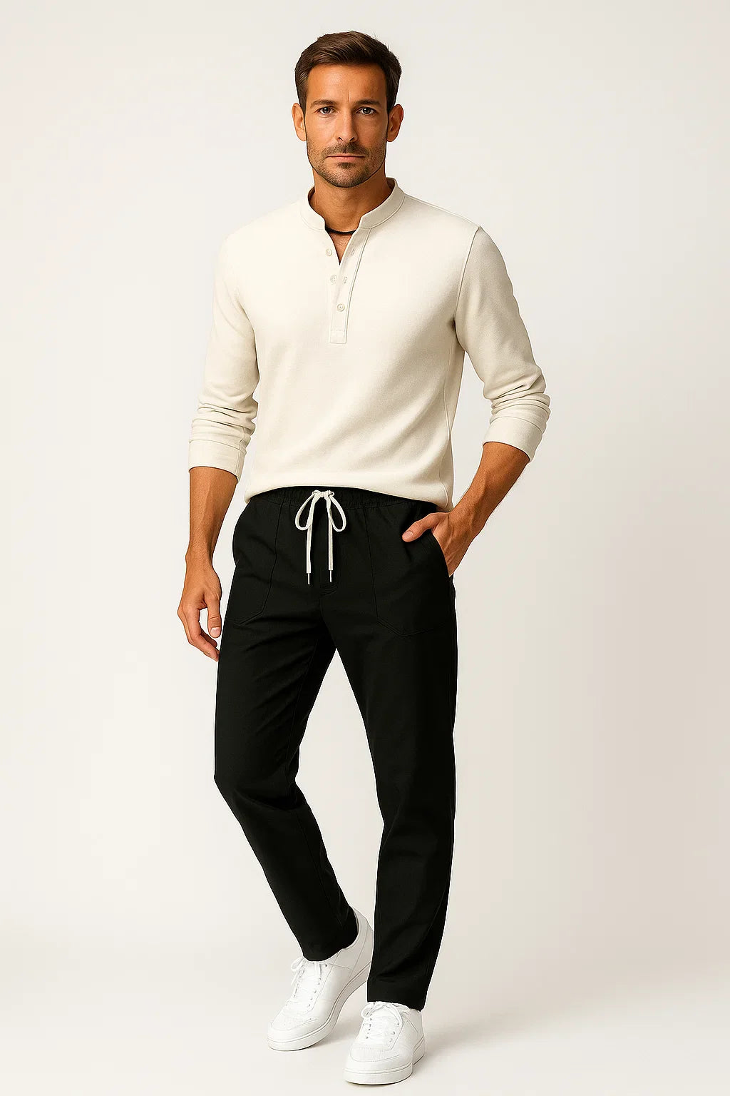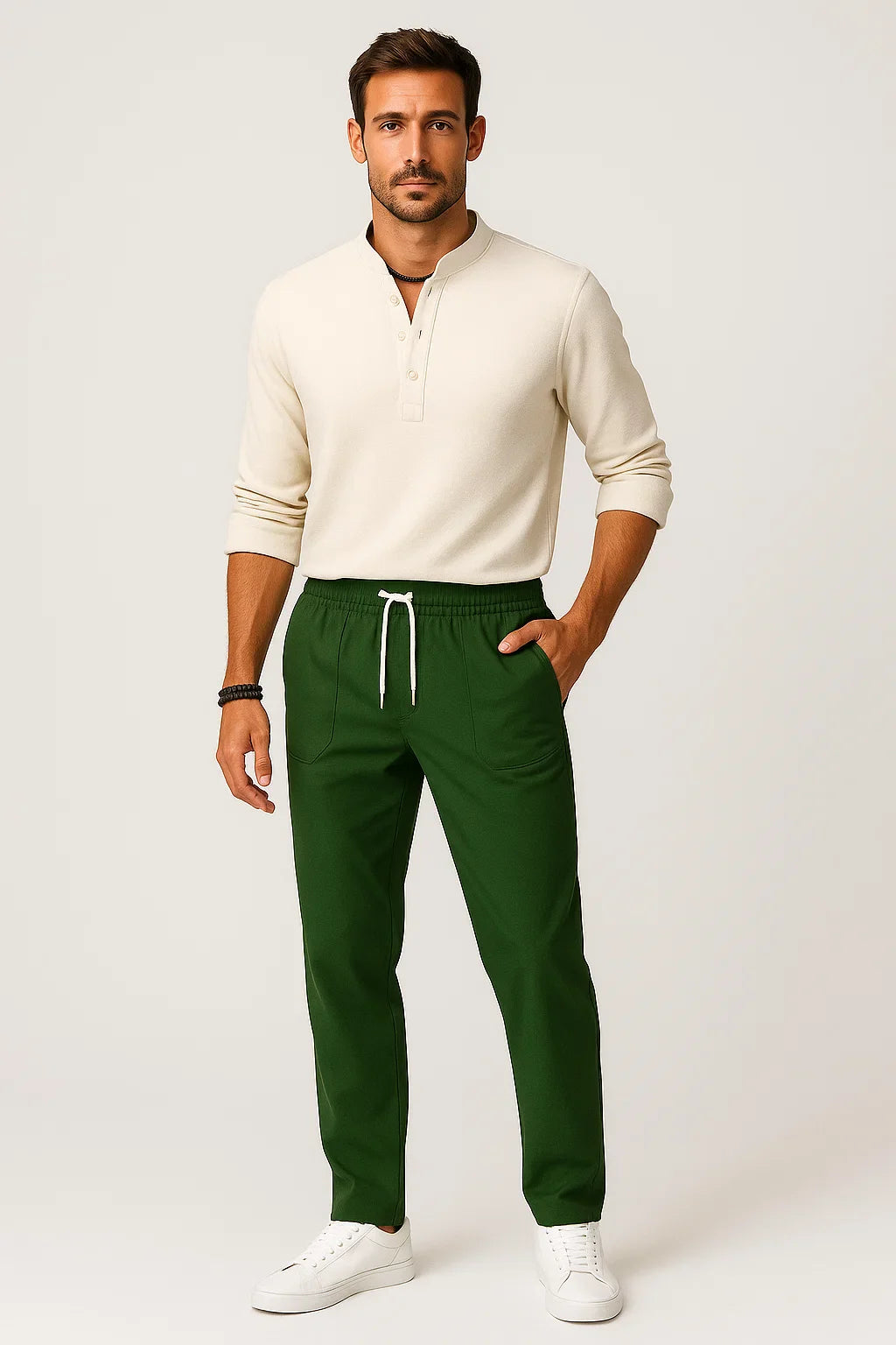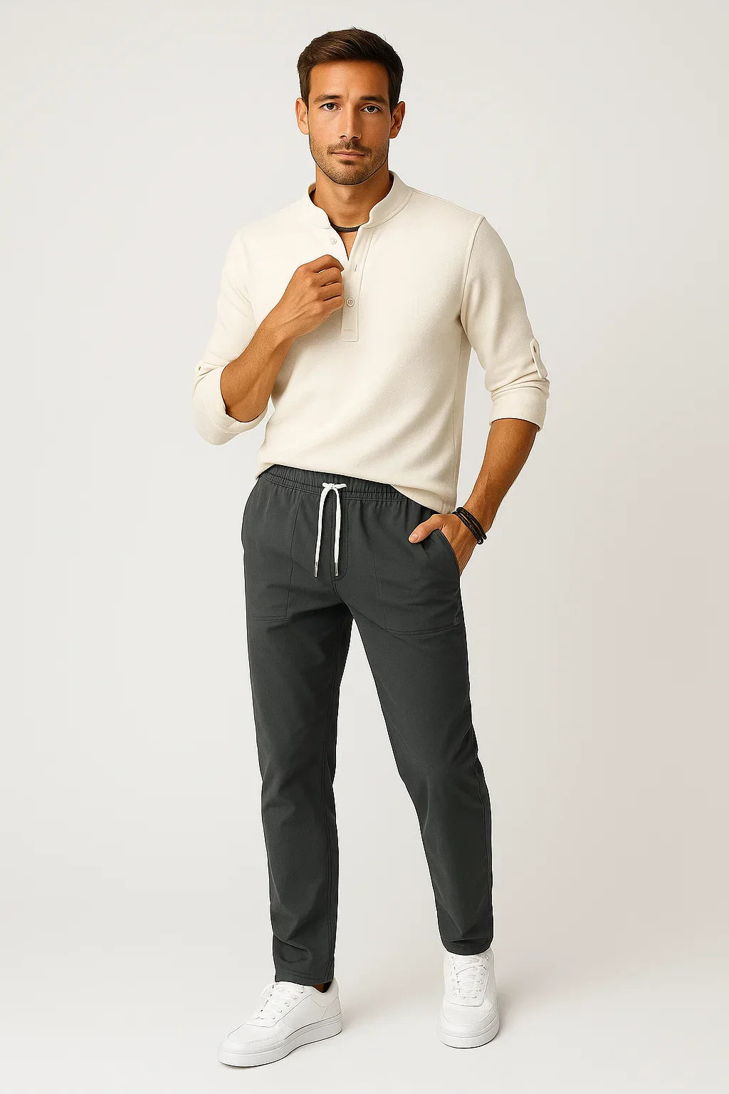Diese lässigen Freizeithosen vereinen modernen Komfort mit unkompliziertem Stil für Alltag, Reisen oder entspannte Stunden zu Hause. Mit ihrer lockeren Silhouette, dem elastischen Bund und praktischen Taschen bieten sie alles, was du für einen bequemen Look brauchst. Das atmungsaktive Material sorgt dafür, dass du dich auch an wärmeren Tagen wohlfühlst, ohne Kompromisse beim Stil einzugehen.