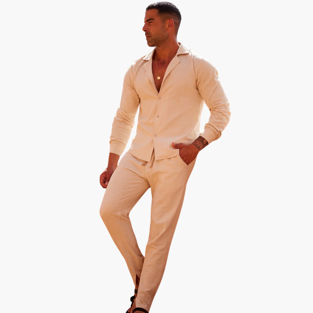 Genießen Sie sommerliche Leichtigkeit mit dem Luca Herren Set aus hochwertigem, atmungsaktivem Stoff. Dieses stylische Set vereint Komfort und Eleganz perfekt – ideal für warme Tage und besondere Anlässe. Fühlen Sie sich selbstbewusst und gepflegt mit dem modernen Design und der perfekten Passform.
