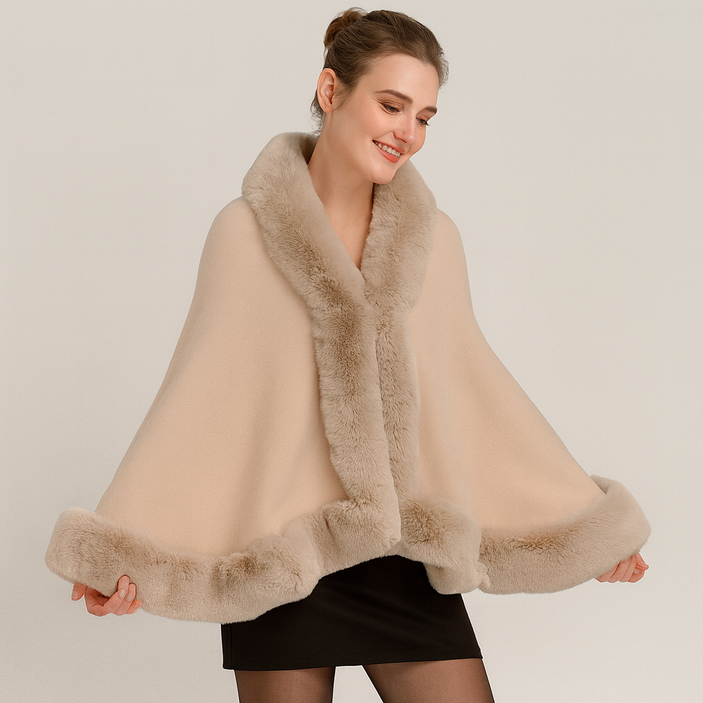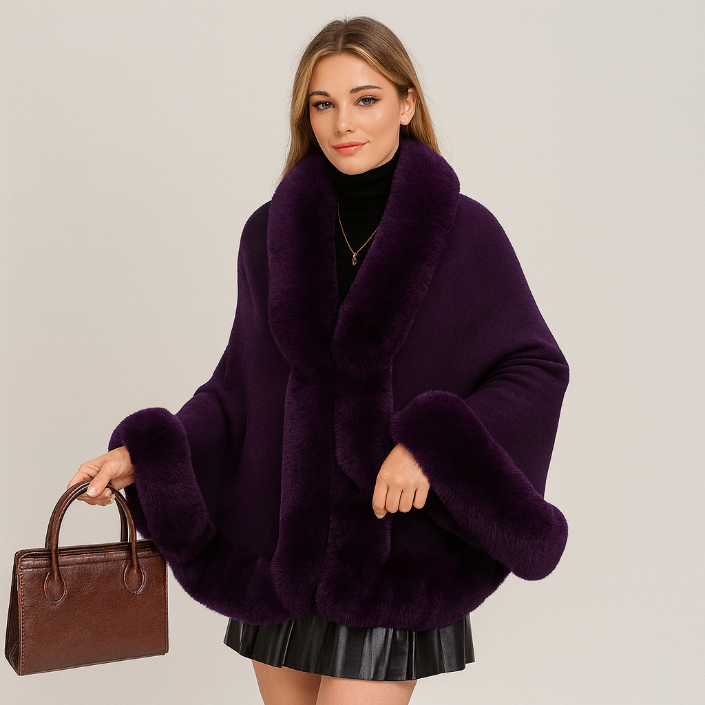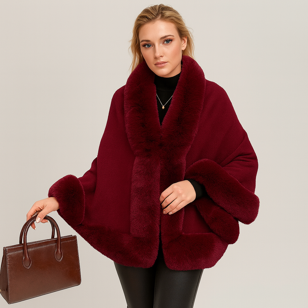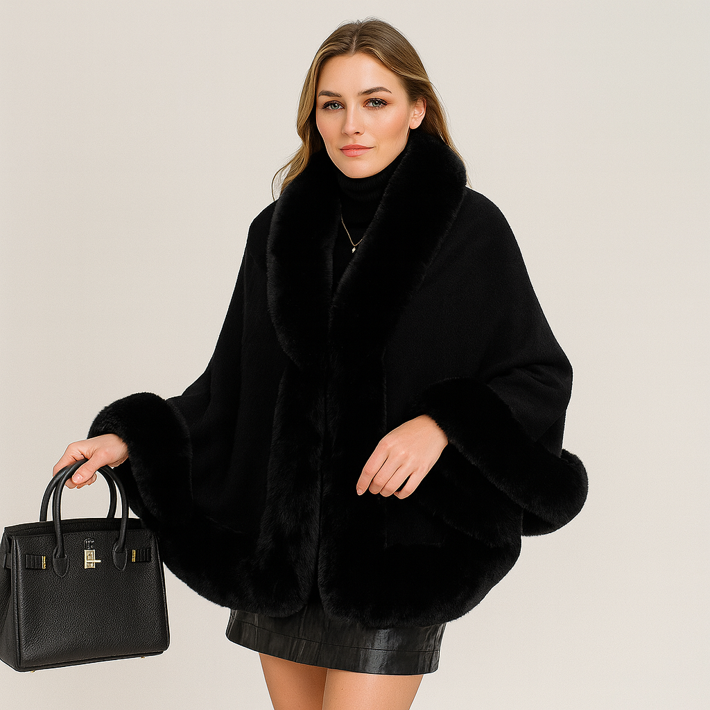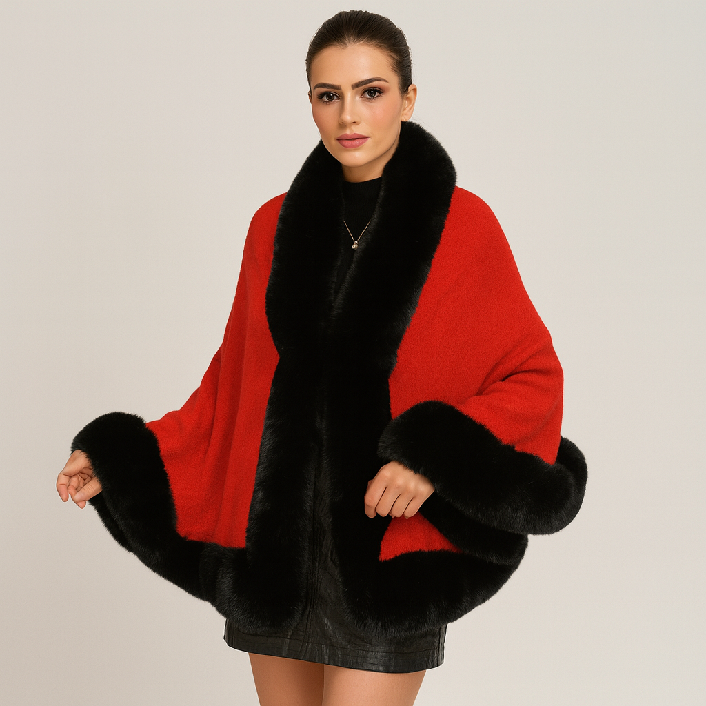 Marcella | Fledermausmantel mit offener Vorderseite und Pelzbesatz
