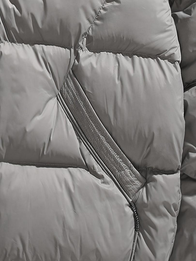 Die Unisex Winter-Daunenjacke | Mit Kapuze zeigt eine gesteppte Oberfläche, eine integrierte Kapuze und eine klar strukturierte Silhouette. Das Modell verfügt über einen frontseitigen Verschluss sowie seitliche Taschen. Die Jacke kann mit Jeans, Strickoberteilen oder schlichten Basic-Shirts kombiniert werden und eignet sich für verschiedene Alltags- und City-Outfits.