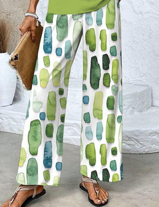 Stil: Ärmel Top mit eckigem Ausschnitt, weite Hose mit Print